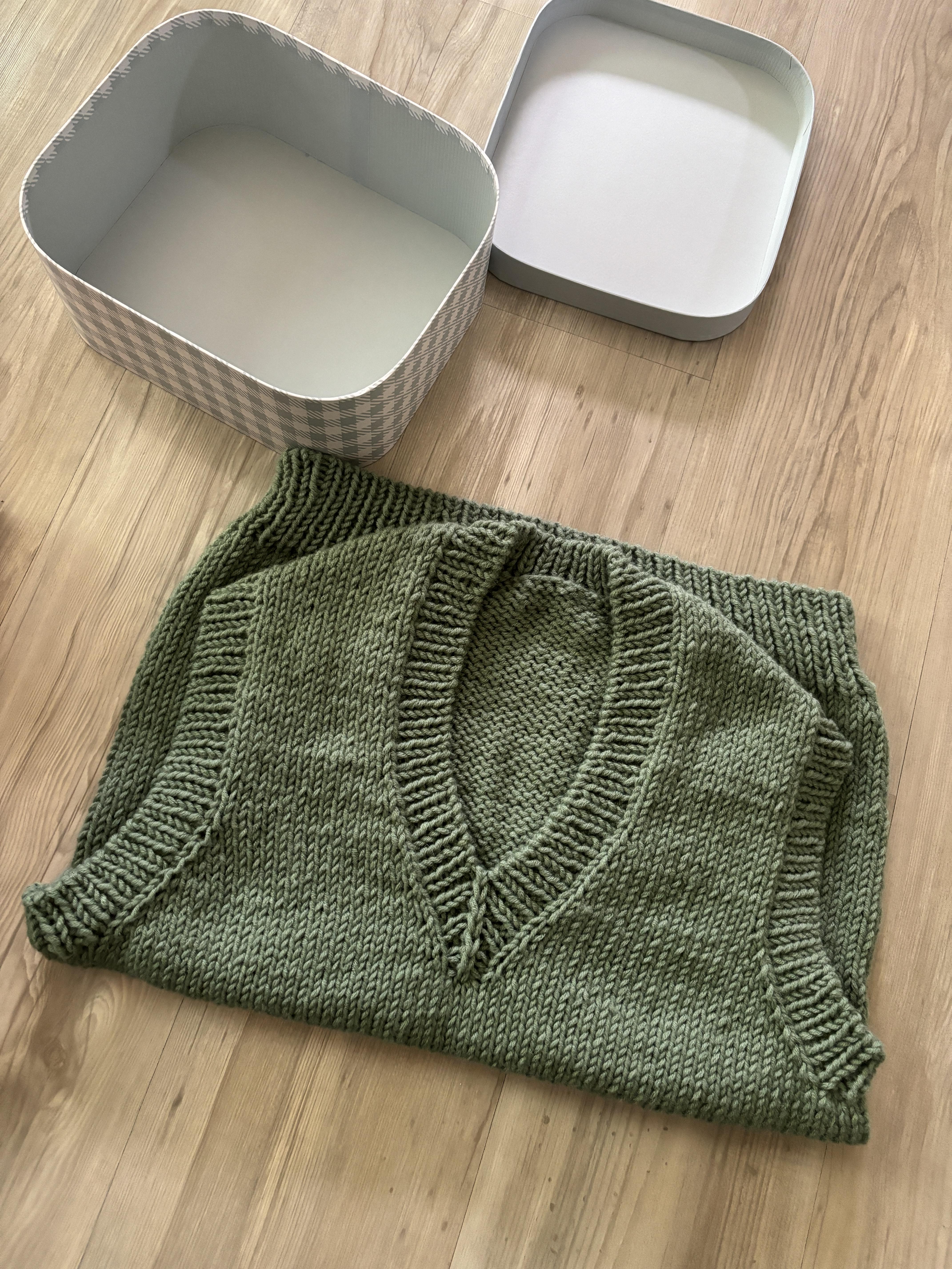 브이넥과 소매까지 한코고무뜨기 6단 뜨고 모두 돗바늘로 마무리했어요.
