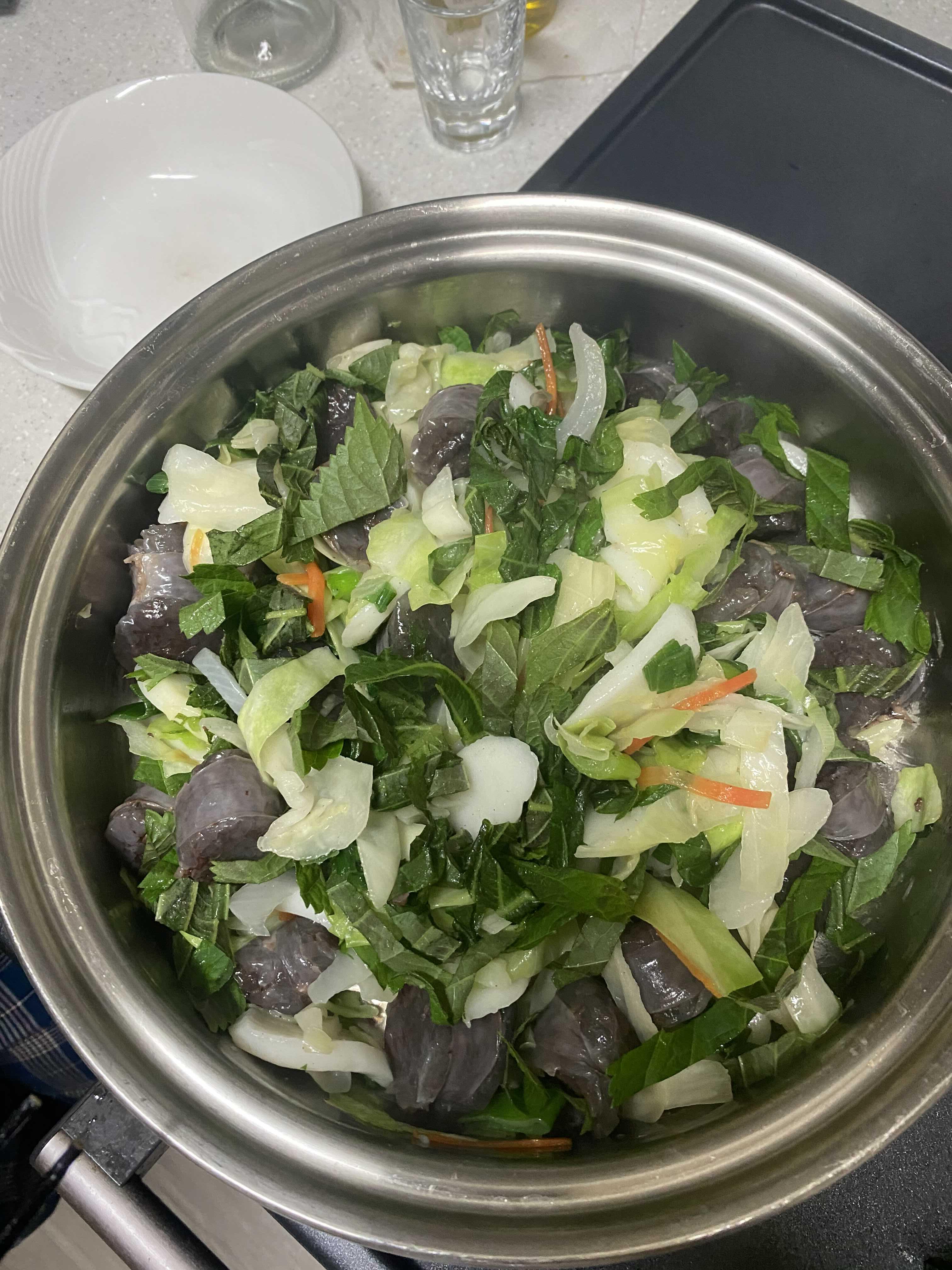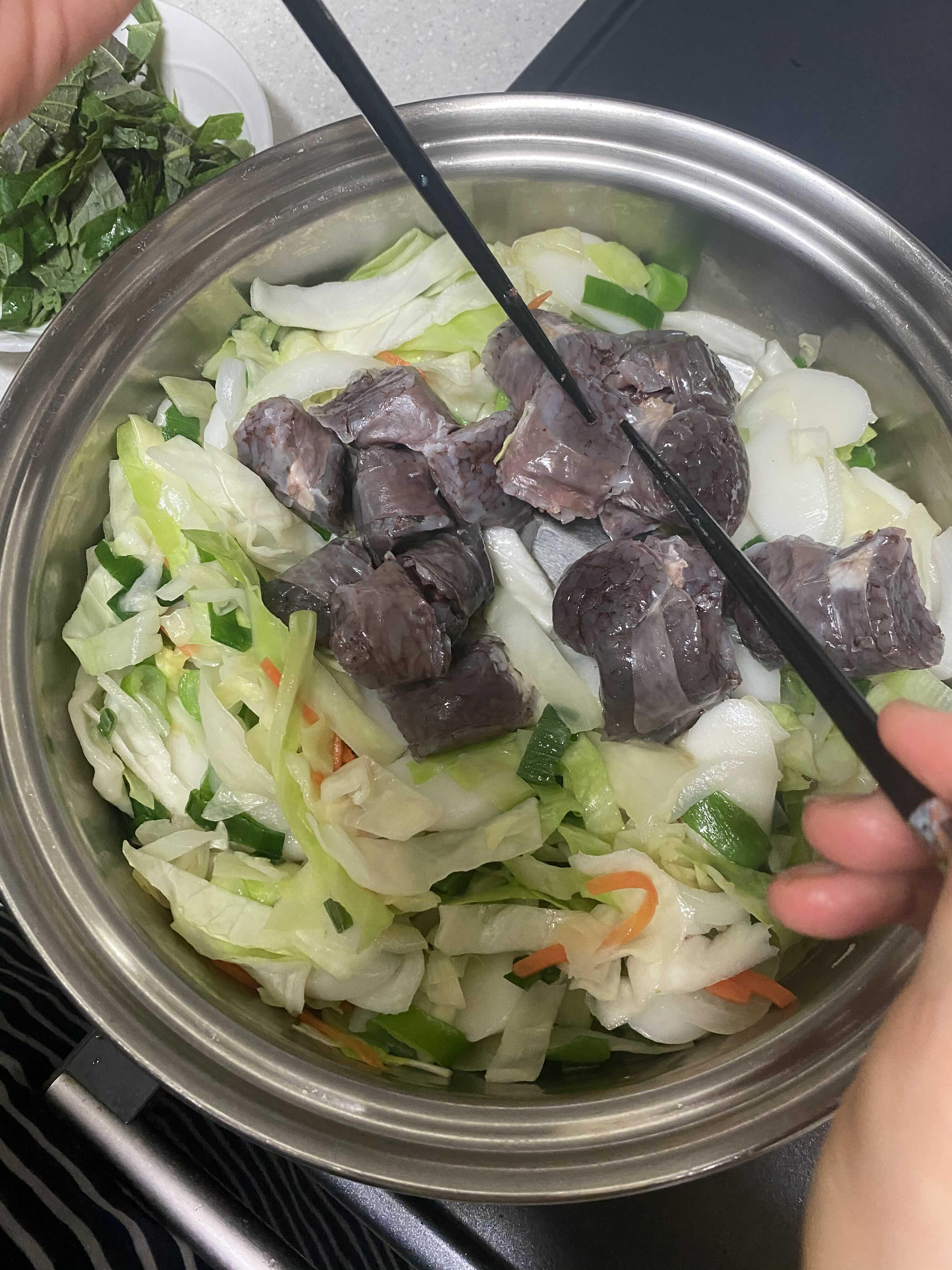 순대, 양파, 양배추, 대파 , 당근, 깻잎, 들깻가루, 양념